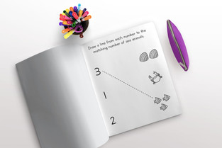TIPS: If your child is just learning to hold a crayon, snap the crayon in half so that it is shorter. This makes it easier for them to use a tripod grasp. Encourage directionality of print by helping your child point at the objects from left-to-right as you count out loud. Show them how to trace the numbers on the page going from top-to-bottom and left-to-right. One-to-one correspondence is